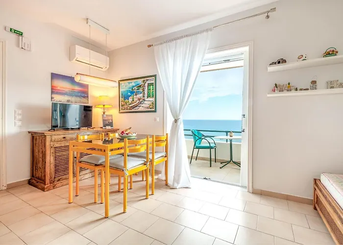 In den Glyfada New Era Home 107 Menigos Resort Apartments kann man die eigene Küche nutzen, um köstliche Mahlzeiten zuzubereiten. Das Ausblick über die Terrasse und den Balkon sorgt dabei für eine angenehme Atmosphäre beim Speisen.